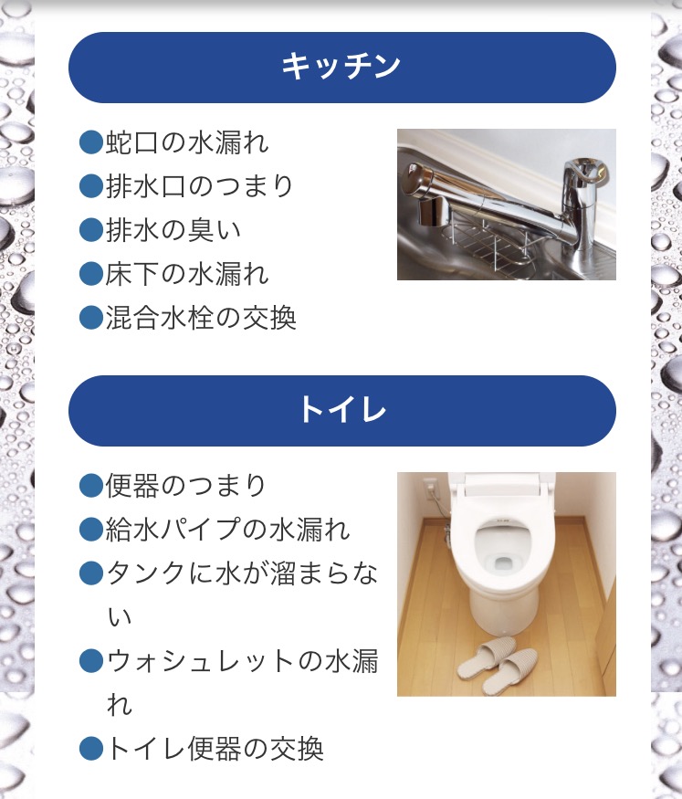 水廻りのトラブルが起きた際はお気軽にお問い合わせください。